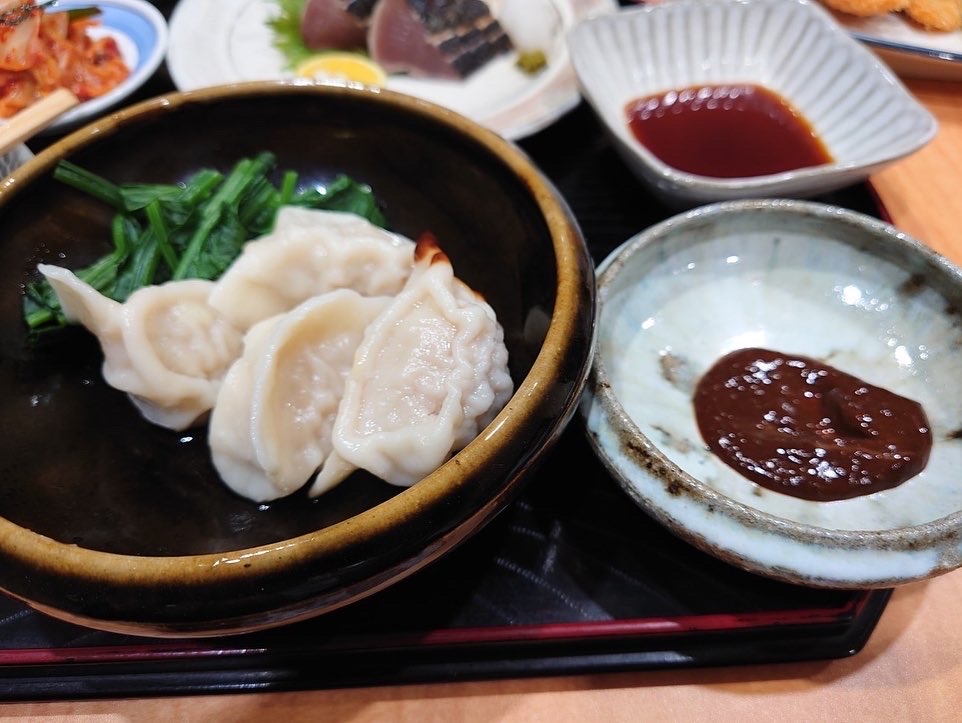 ポン酢やタルタルソース、調味料まで手作りで優しい味餃子の皮まで手作りでした。